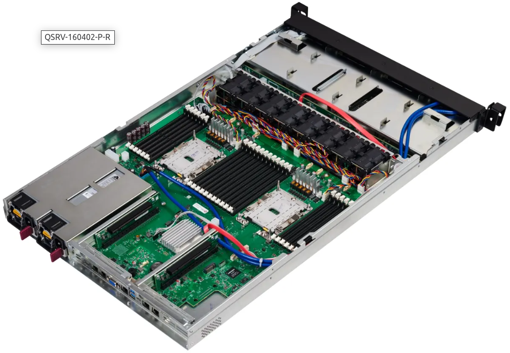 Серверы построены на основе платформы QSRV-160402-P-R 1U; (4×3.5 HDD SATA/SAS 3.0 (поддерживает 2.5'); 2×Intel SL (LGA 3647 max 205 Вт TDP); 24×DDR4; SW RAID 0,1 & 10; 1×M.2 PCIe x4; 1×M.2 SATA; 2×800 Вт (1+1); 2×1GbE LAN; 2×16 HHHL; IPMI; Rails