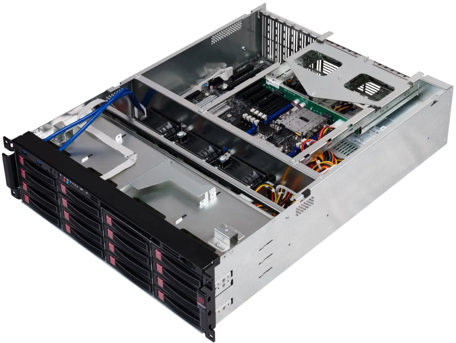 дисковая подсистема до 16 дисков 3,5”/2,5” SAS/SATA HDD, SSD горячей замены (Возможность дополнительно установить дисковые корзины 2*2,5” SAS/SATA HDD SSD, 2*3,5”/2,5” SAS/SATA HDD SSD на заднюю панель), а также возможность установки до 2-ух 2,5” дисков внутри корпуса,