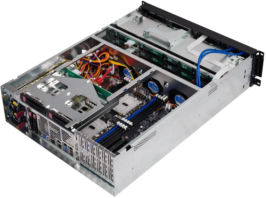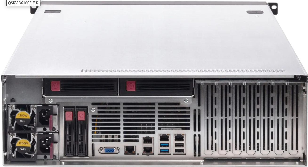 Серверы построены на основе платформы QSRV-361602-E-R 3U; (16×3.5 HDD SATA/SAS 3.0 (поддерживает 2.5') + 2×2.5” rear bay’s; 2×Intel SL (LGA 3647 max 205 Вт TDP); 16×DDR4; SW RAID 0,1 & 10; 1×M.2 PCIe x4; 1×M.2 SATA; 2×800 Вт (1+1); 4×1GbE LAN; 1х8 PCIe + 5x16 HHHL; IPMI; Rails)