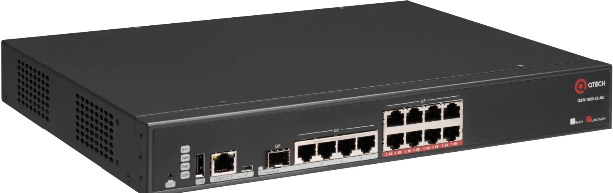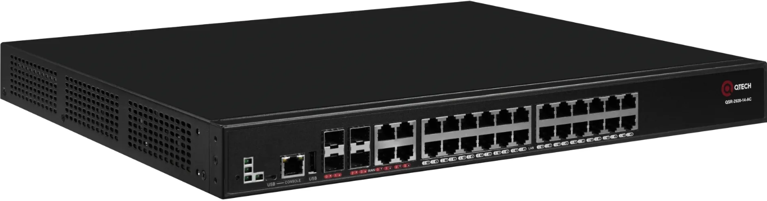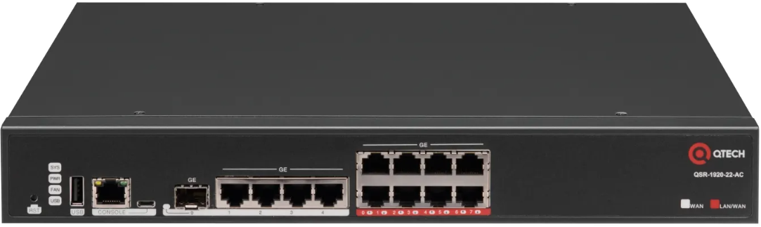 | QSR-1920-12-AC | Маршрутизатор, 8 портов 10/100/1000BASE-T (LAN), 1 порт 100/1000BASE-X SFP (WAN), 1 порт USB 2.0, 2 слота, встроенный БП, 100-240В |
