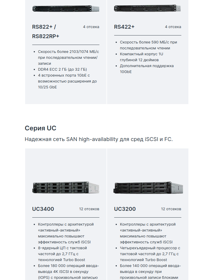 Серия UC- Надежная сеть SAN high-availability для сред iSCSI и FC.