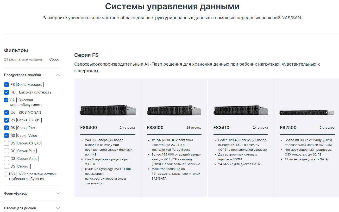 Серия SA - Масштабируемые решения хранения данных для корпоративных клиентов с высокими требованиями к производительности и емкости.